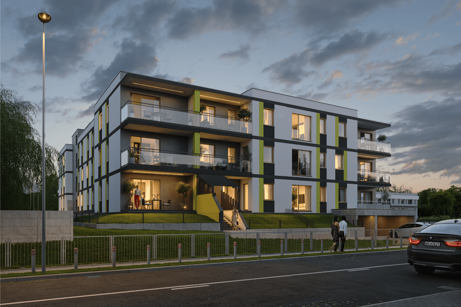 to kameralny projekt łączący walory estetyczne z użytkowymi. Minimalistyczna elegancja bryły budynku i tylko 42 lokale w całej inwestycji, zapewnią przyjemność mieszkania. Wszechobecna zieleń i cudowne widoki z pięknie doświetlonych mieszkań, to gotowy przepis na ukojenie zmysłów, a podziemny garaż i komórki lokatorskie, to odpowiedź na potrzeby każdego z nas. Detalicznie zaplanowane wnętrza, jasne wykończenie przestrzeni wspólnych i dwie komfortowe windy, to jedne z licznych walorów inwestycji.